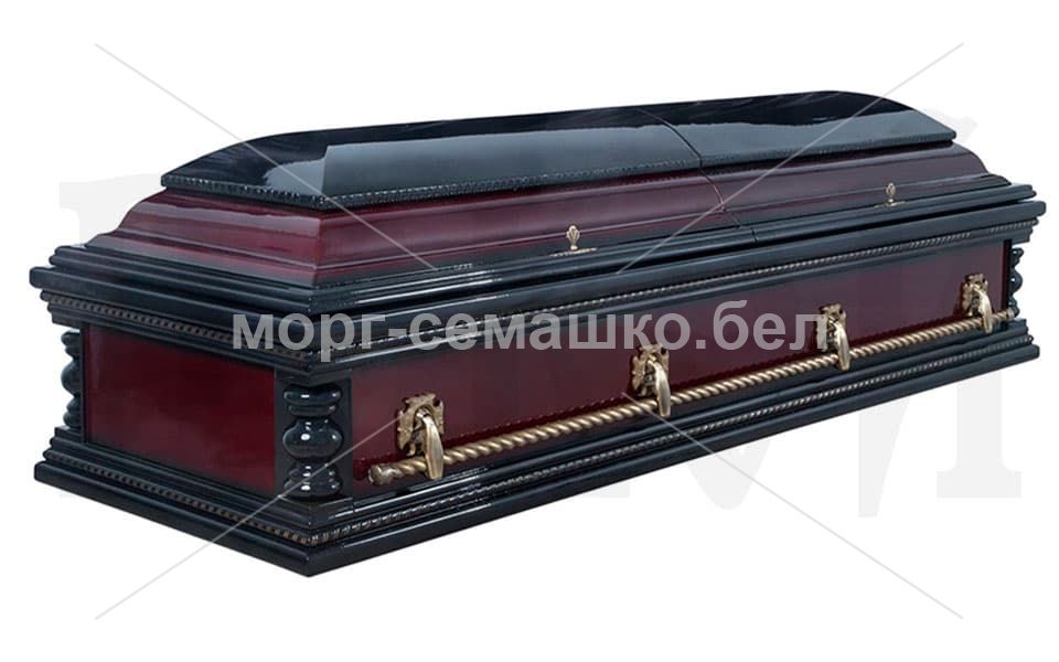 Гроб премиум-класса — один из высших вариантов погребальной мебели, создаётся из лучших материалов и с учётом длительной эксплуатации и эстетики. Обычно конструкция прямоугольная или с мягкими формами по заказу. Корпус состоит из высокой плотности древесины или шпонированной основы с благородной внешней отделкой: махагон, орех, красное дерево, бук или ясень, часто с декоративной инкрустацией. Внешняя поверхность покрывается лаком или маслом для защиты и блеска; внутри — подкладка из бархата или атласа. Ручки из металла (латунь, нержавеющая сталь) или декоративно отделанные. Размеры подбираются по росту покойного и требованиям обряда.